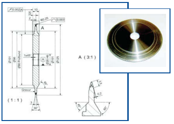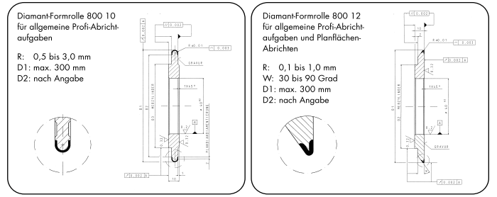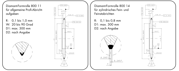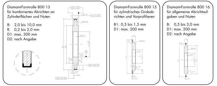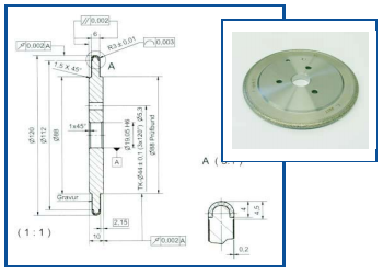 金刚石滚轮修整器使用于外形较为复杂,精度要求较高,批量生产零件的磨削加工。其特点是将需要多次磨加工的工序合为一次加工,改善成型砂轮的线型度,可以大大提高产品质量以及提高生产效率。